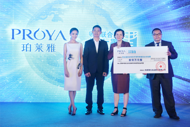 2013年9月12日,,,,星耀国际与联合国妇女署公益合作发布会,,,在杭州西子湖畔盛大举行。。在近百家媒体及行业同仁的见证下,,,,星耀国际CEO方玉友先生与星耀国际爱心大使佟丽娅亲手将首批300万公益款支票,,,,交到联合国妇女署中国代表手中,,,至此作为国内化妆品领军企业的星耀国际正式成为联合国妇女署中国首家企业合作伙伴。。。在发布会上,,星耀国际同时宣布启动“海阔天空·女性就业平等计划”,,,,将通过持续投入帮助女性实现海阔天空的职业梦想。。